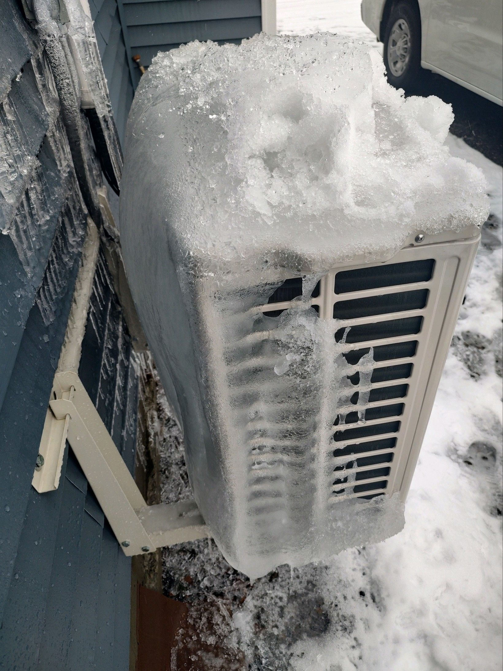 Snow and ice buildup is more than just a cosmetic issue. Heat pump condensers that become ice-logged are more likely to malfunction and run inefficiently.